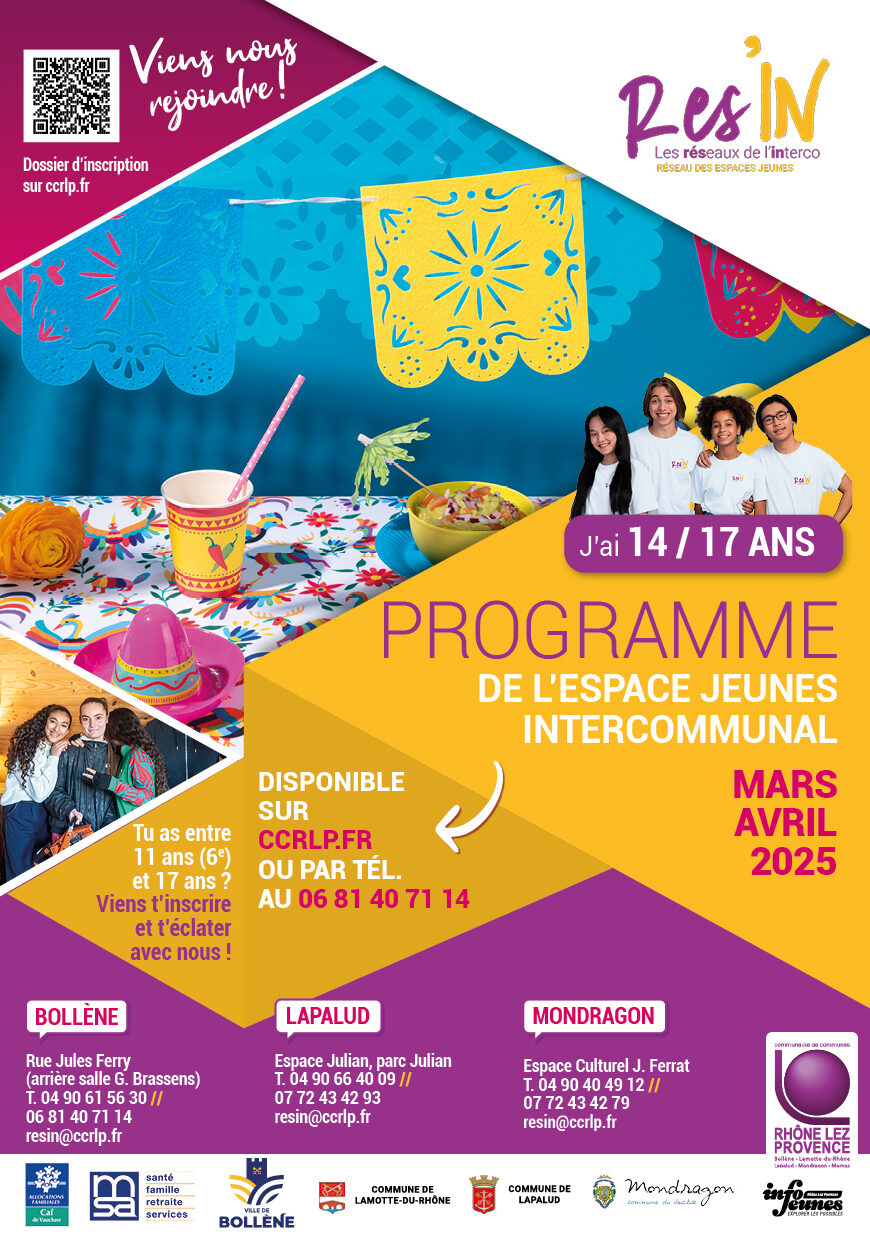 Communauté de Communes Rhône Lez Provence > Mon quotidien > Jeunesse, culture, sport & loisirs > L’espace jeunes intercommunal > 03-2025_Planning_CV_14-17